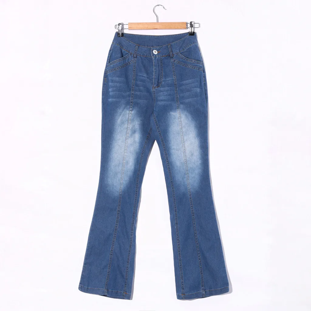 Женские джинсы со средней талией и вышивкой, Стрейчевые расклешенные брюки на пуговицах