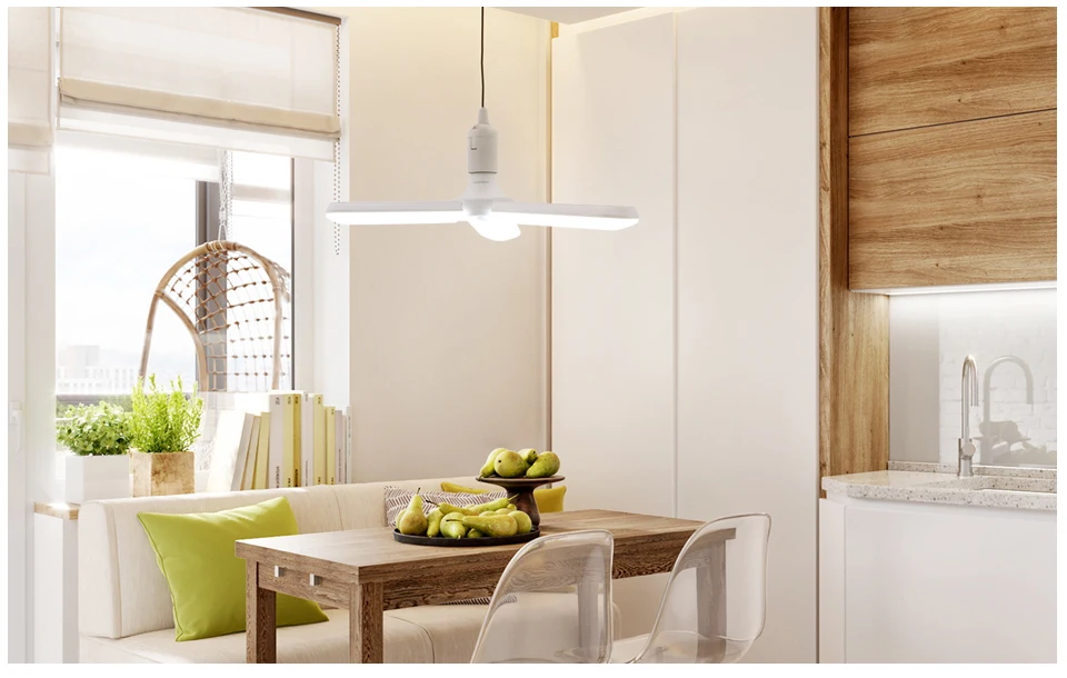 Тип изделия: светодиодный складной вентилятор Винт: E27 Напряжение: AC95-265V Мощность: 30 Вт/45 Вт/60 Вт Цветовая температура: 5500-7000K Световой поток: 4500LM Индекс цветопередачи: 80-90 Материал: Поликарбонат + пластик Особенности: 1. Fordable светодиодный светильник s, светильник имеет светильник большой площади светильник ing, высокая яркость и энергосбережение. 2. Светильник выполнен из высококачественного ПВХ материал, он поставляется с хорошим светильник эффект передачи и более равномерного освещения. 3. Размер Свободно вращается по желанию. 90 ° свободно растягивается. Универсальный винт E27, постоянный ток и широкое давление, сильная применимость. 4. Корпус лампы имеет текстуру в форме полосы, а ослепительные линии показывают роскошь корпуса лампы. Посылка список: 1 * Светодиодный светильник для вентилятора