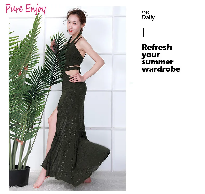 Новинка, Женская Одежда для танцев, одежда для танца живота, Цельный Сарафан, тренировочный костюм для девочек, Сетчатое платье без рукавов для танца живота
