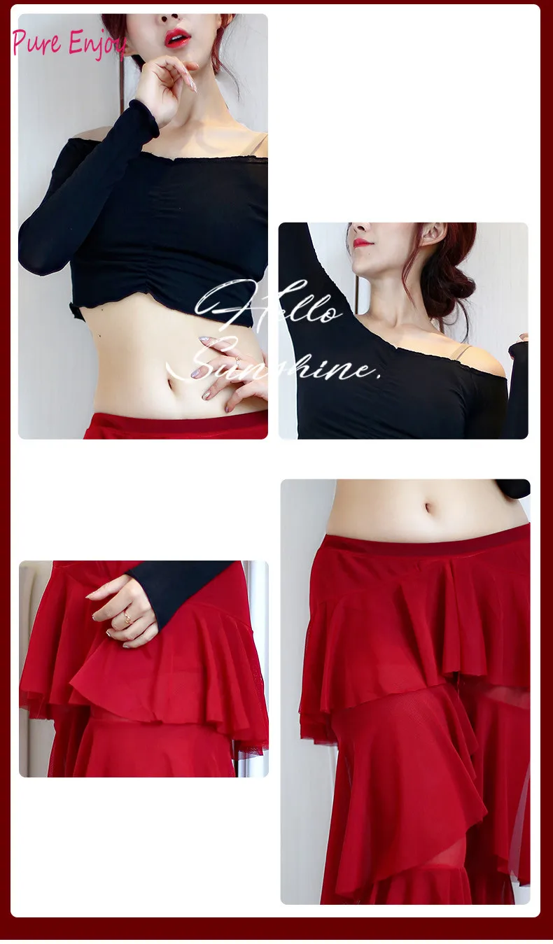 Girls competition Belly Dance Costumes Women Dress (long Sleeves Top + Skirt) 2pcs For Dancer Clothing S,M, L, Dance clothes