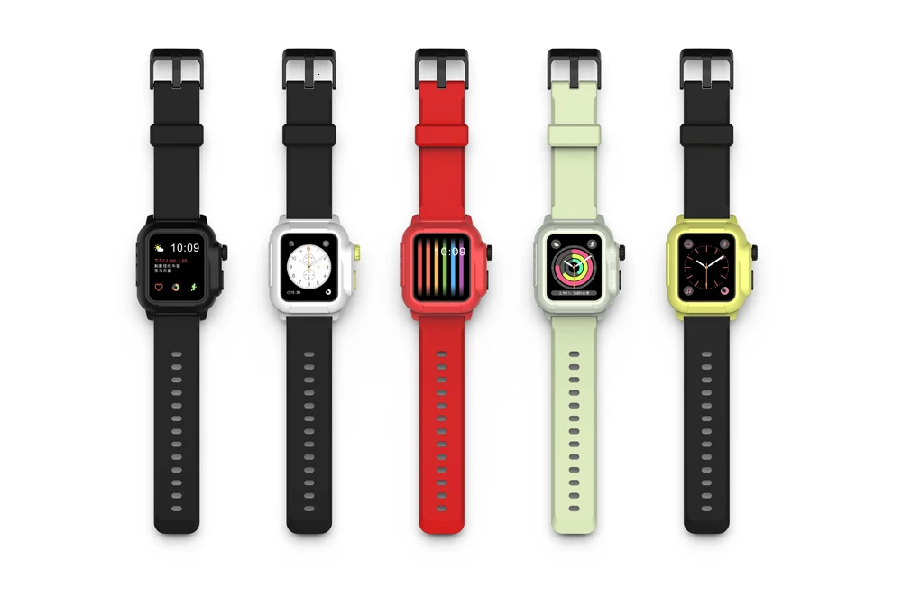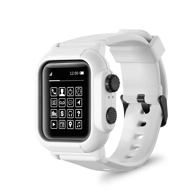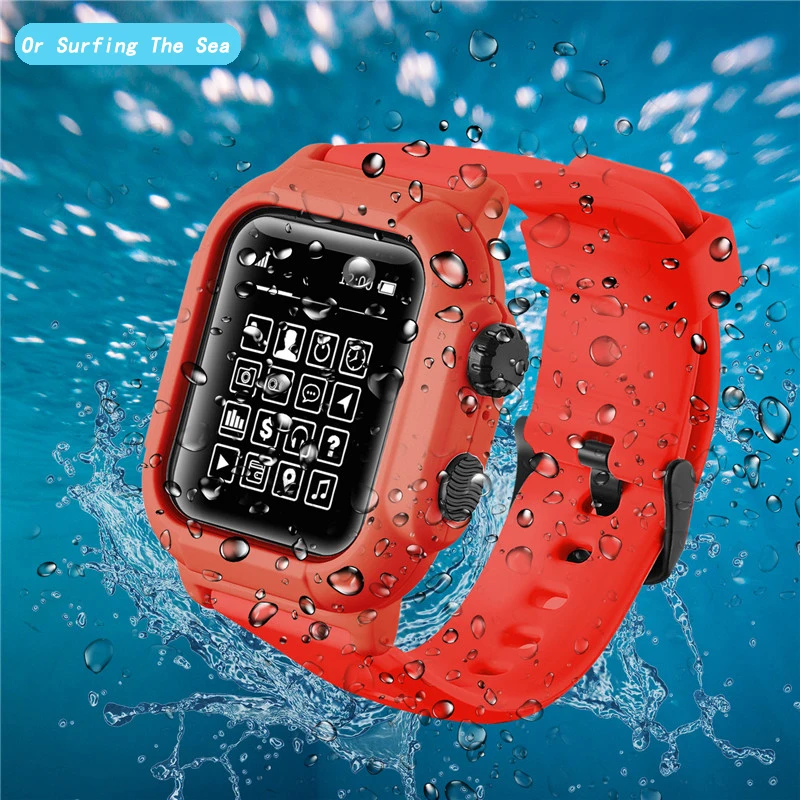 Водонепроницаемый ударопрочный чехол для Apple Watch Series 5 4 3 2 Мягкая силиконовая лента для iWatch Bands 42 мм 44 мм