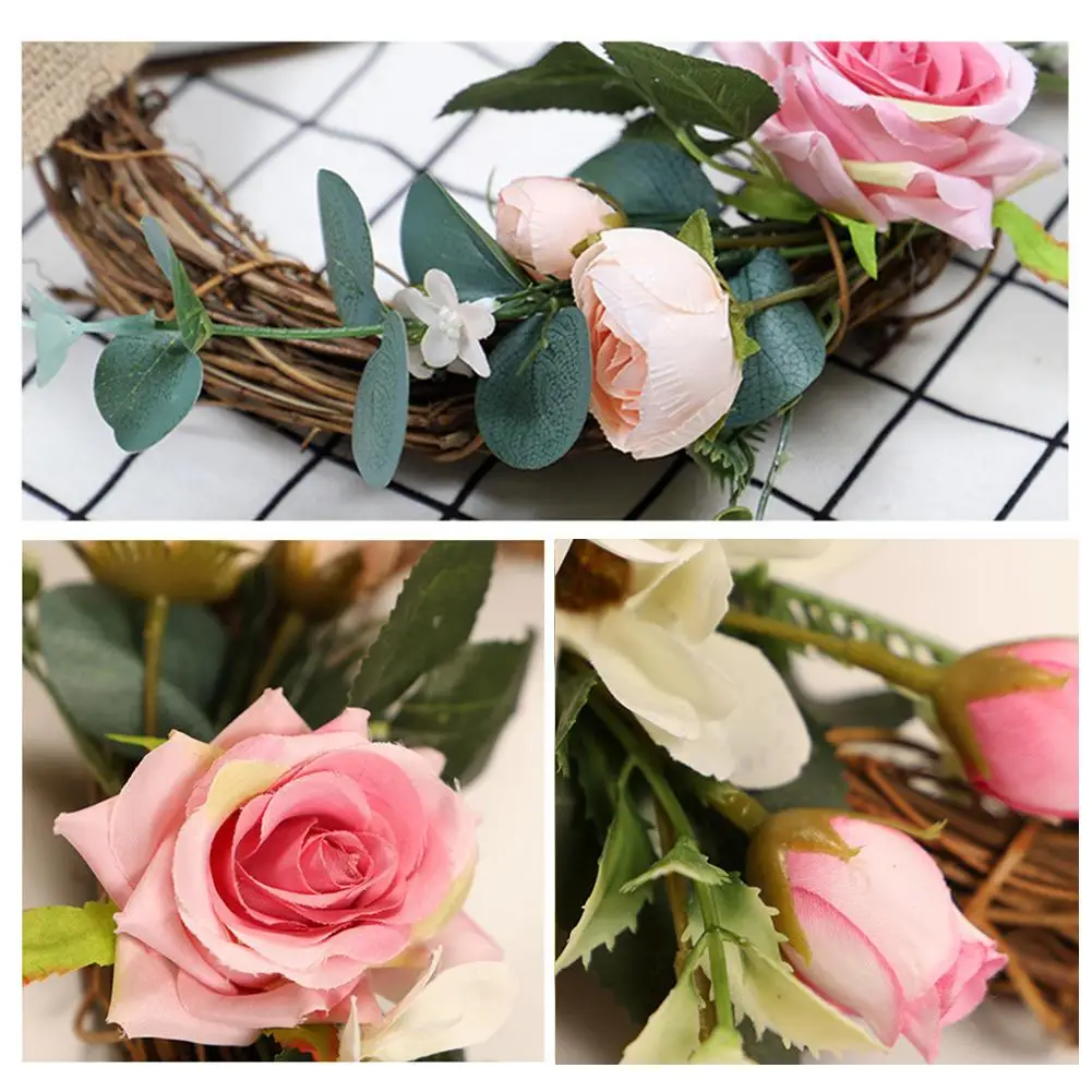 Изготовлено из шелковой ткани, многоцветное сочетание с общей формой гирлянды трехмерное, ручной Плетеный круг из ротанга натуральный.
