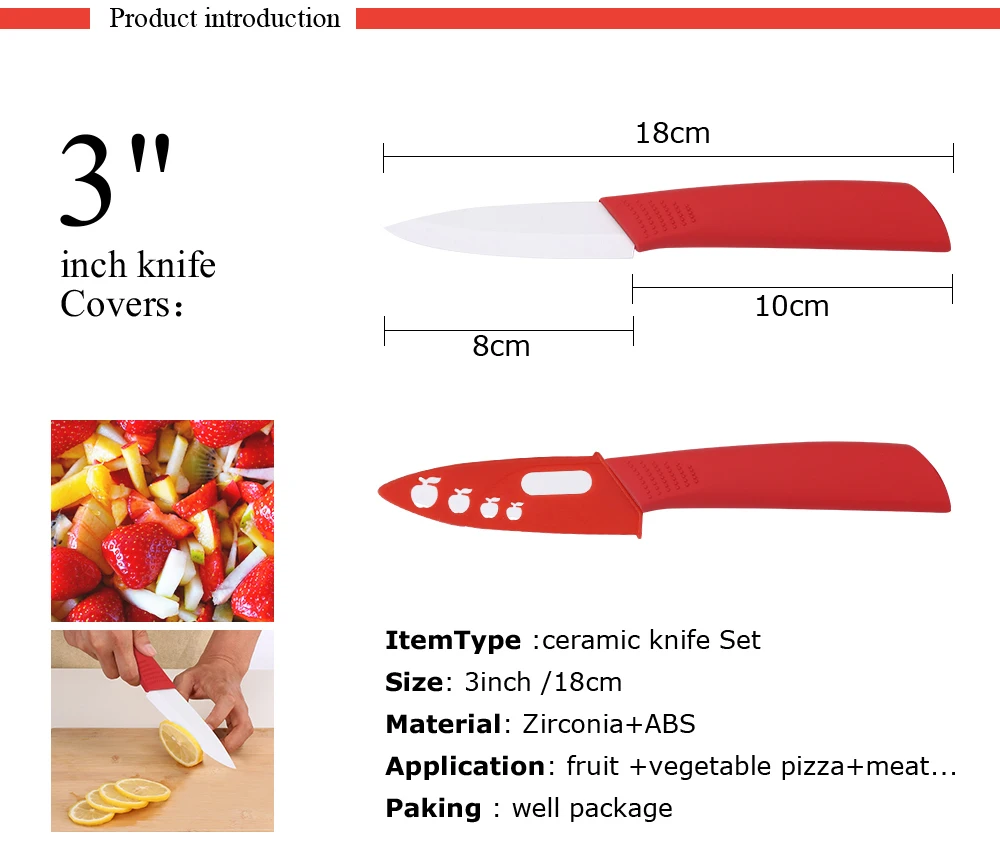 Керамический нож, кухонные ножи, одинарные 3 "ножи для овощей 4" овощные ножи 5 "Нож для нарезки 6" нож шеф-повара, красочная ручка