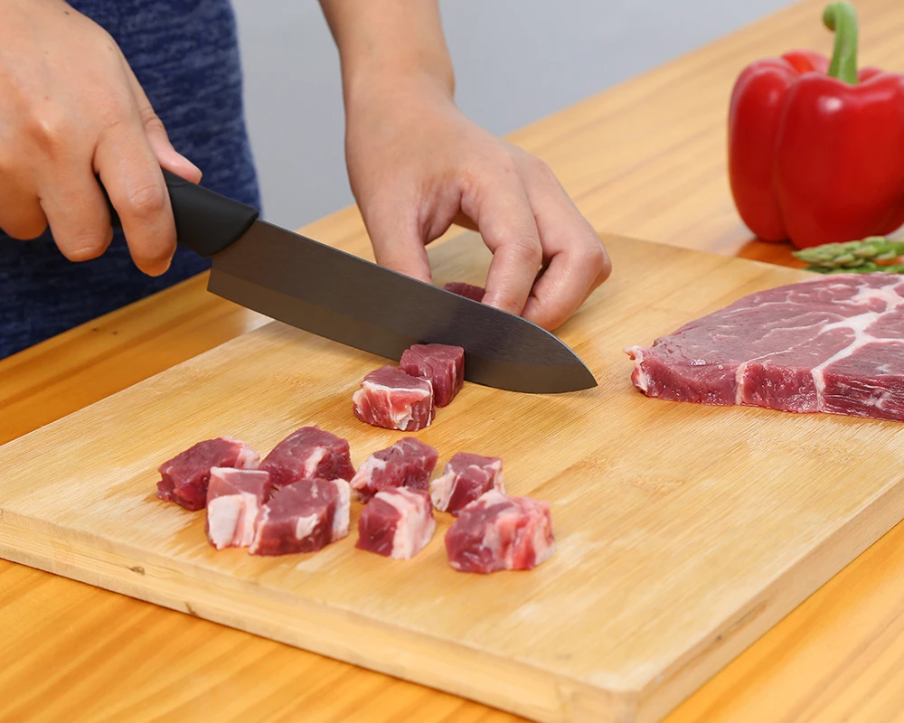 Использоваться на пластиковой или деревянной разделочной доске и избегать резки замороженных продуктов или на поверхности мрамора, стекла и стальной доски.