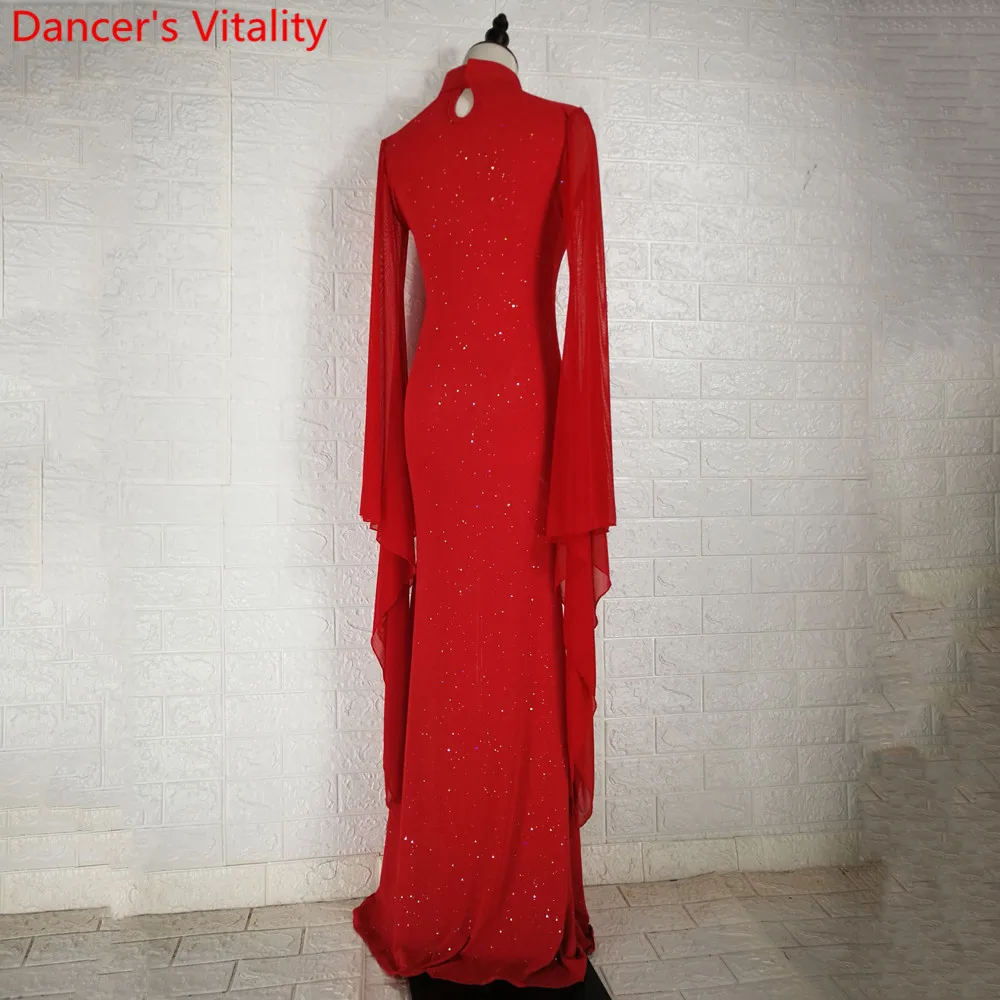 Зимняя одежда для танца живота, одежда для занятий танцами, с алмазным вырезом, длинный рукав, халат, восточные Индийские танцы, одежда для сцены