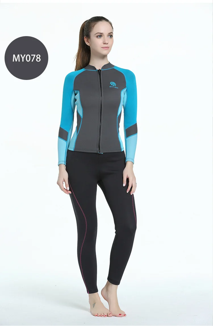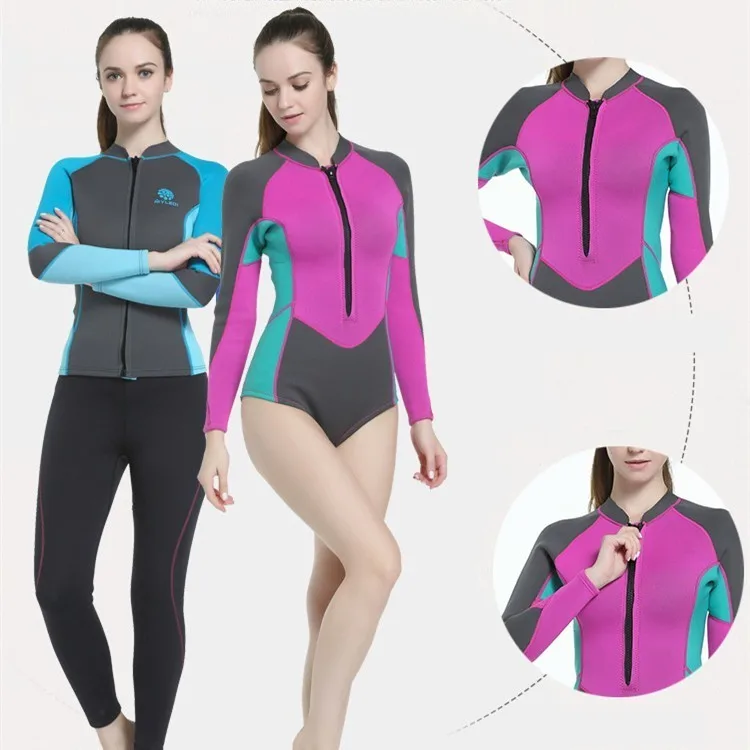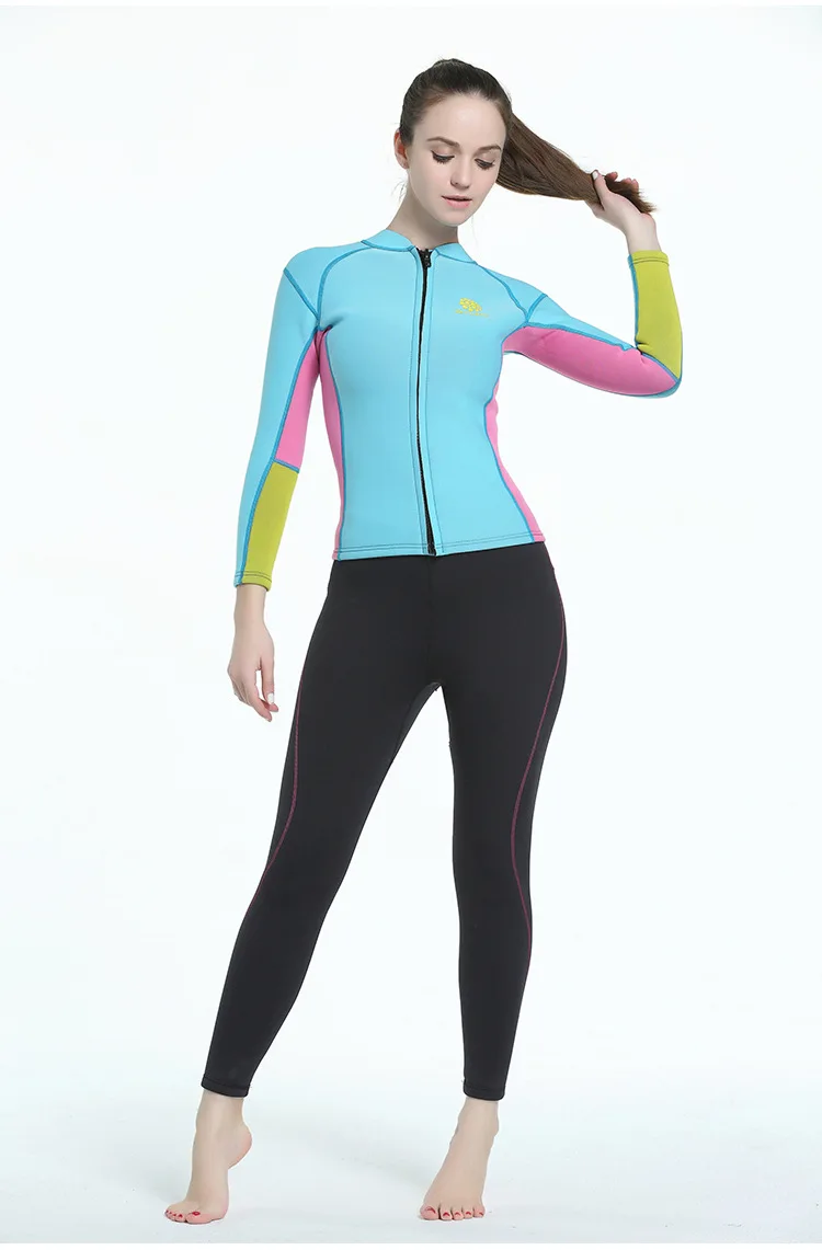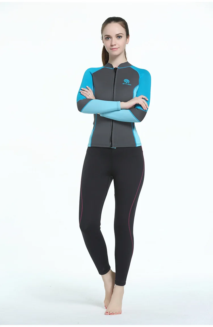 Женская Неопреновая куртка для дайвинга, плавательный подводный костюм, утолщенное теплое бикини для дайвинга, пляжа, серфинга, триатлона, Раздельный гидрокостюм, топы, 2 мм
