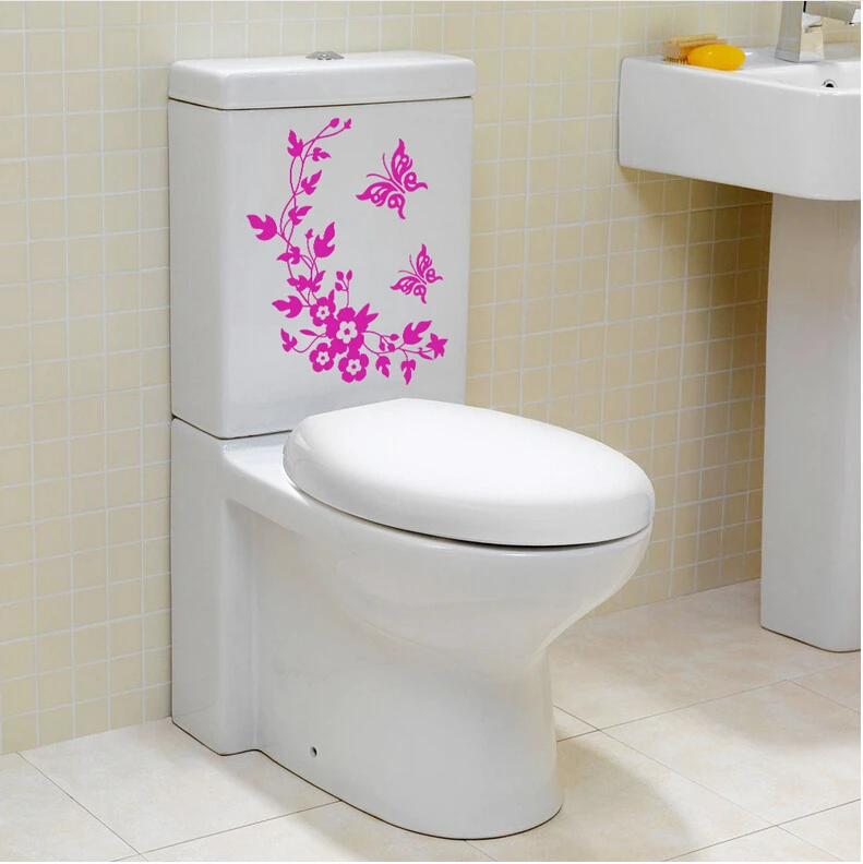 Новый цветок бабочки наклейки для ванной, настенные наклейки для украшения дома, настенные наклейки для туалета, декоративные наклейки для детей, декор для гостиной