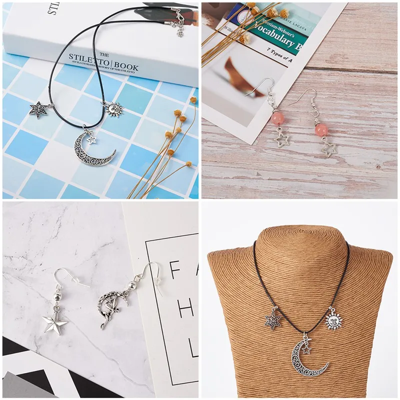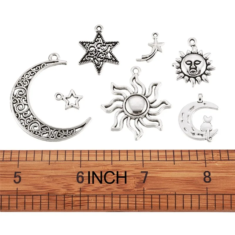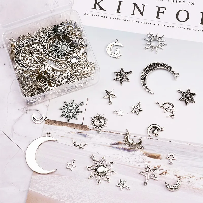 100 шт./кор. разнообразные солнце и луна звезда Тибетский Стиль сплав подвески для самостоятельного изготовления ювелирных изделий Выводы античное серебро