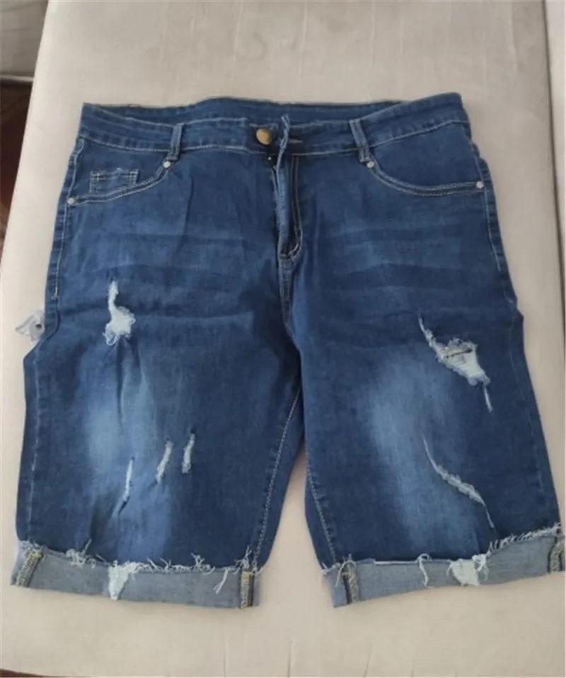 Мужские короткие джинсы до колена, повседневные эластичные рваные брюки с высокой талией