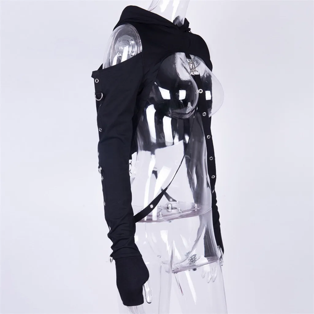 Женский косплей сломанная дыра Готический уличный панк без бретелек с капюшоном укороченный топ рубашка