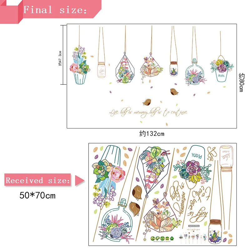 Ptted fower pants drift bottle настенные наклейки для домашнего декора гостиной окна мультфильм самолет настенные наклейки diy постер ПВХ роспись искусство