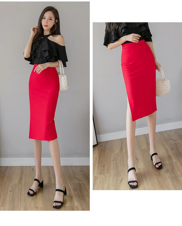 Юбка-карандаш женская шифоновая с высокой талией модная пикантная элегантная