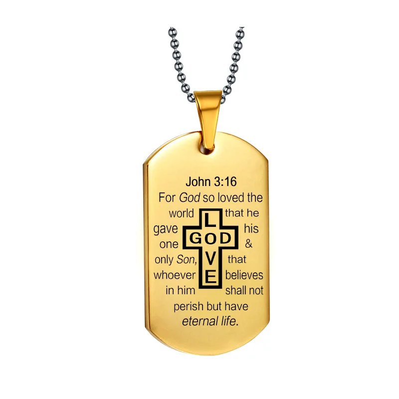 Джон 3:16 Библейский крест кулон с биркой для собак кулон для мужчин бисерная цепочка 24 дюйма христианские религиозные мужские ювелирные изделия подарок