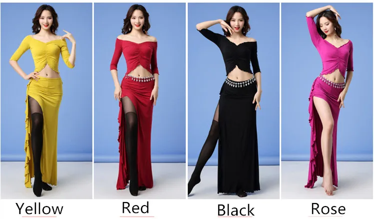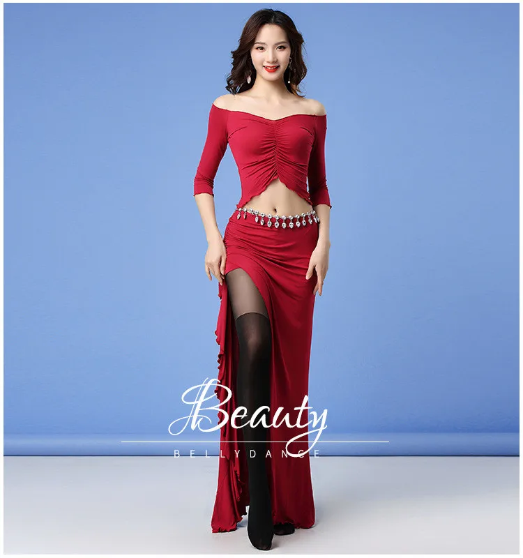 New Fashion Women Dance Clothes Belly Dance Costume Set Stretchy Top Bellydance Dresses Outfit 2 Pieces Set Top Skirt