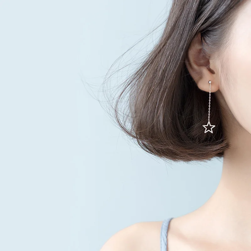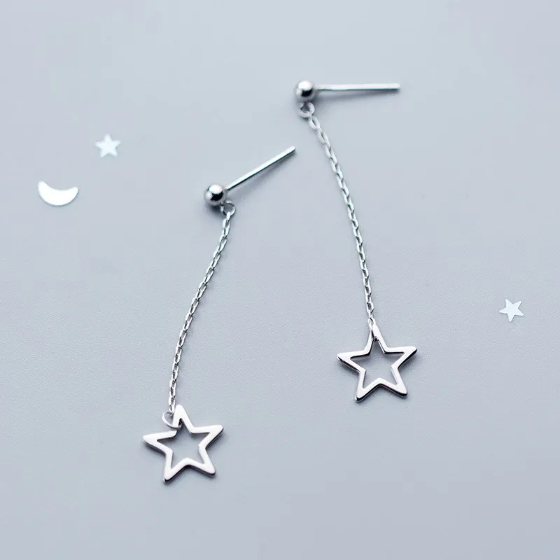 Item Type: 100% 925 Sterling Silver Delicate Star Pendant Earings Long Chain Hanging Ear Dangle Drop Earrings for Women