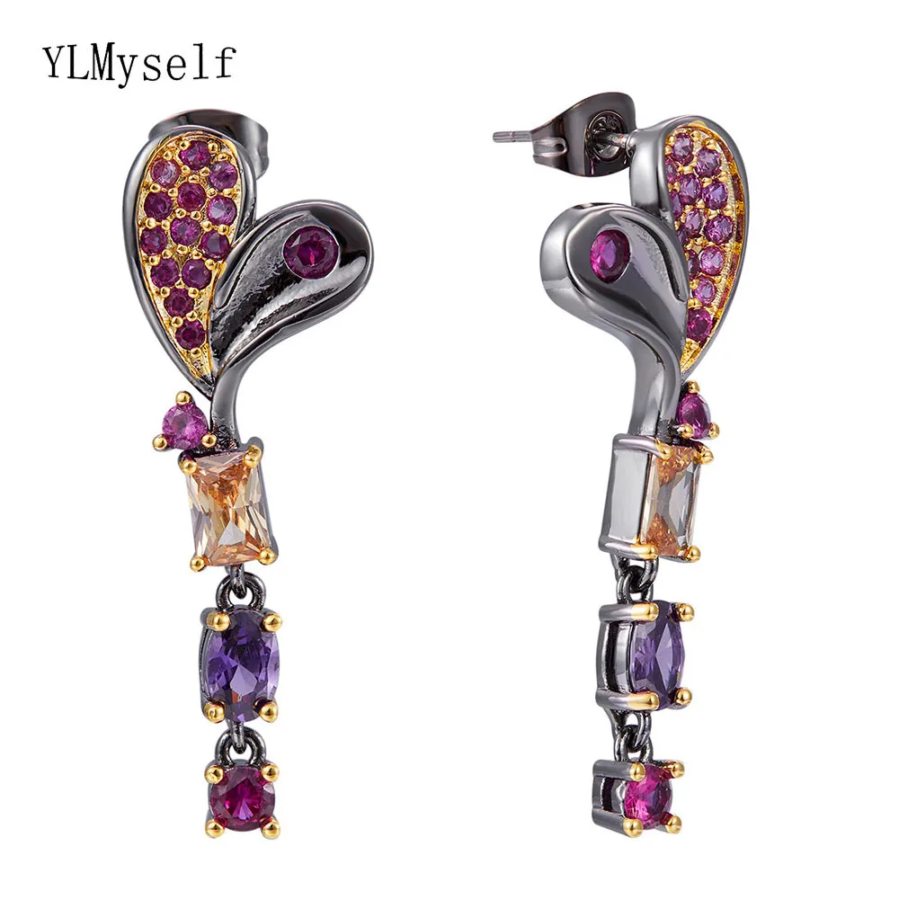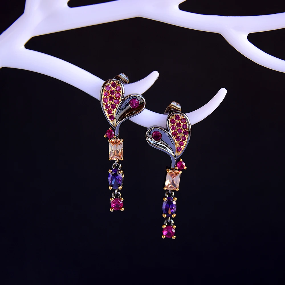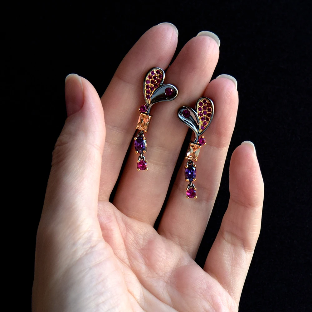 Изготовлен из экологичного медного металла, из толстого ружья черного цвета + 18 к золотого покрытия, украшен фианитами фиолетового/шампанского/фуксии. -- Высокое качество -Быстрая доставка -- Хороший ювелирные изделия ручной работы -- Не вызывает аллергии, не содержит никель