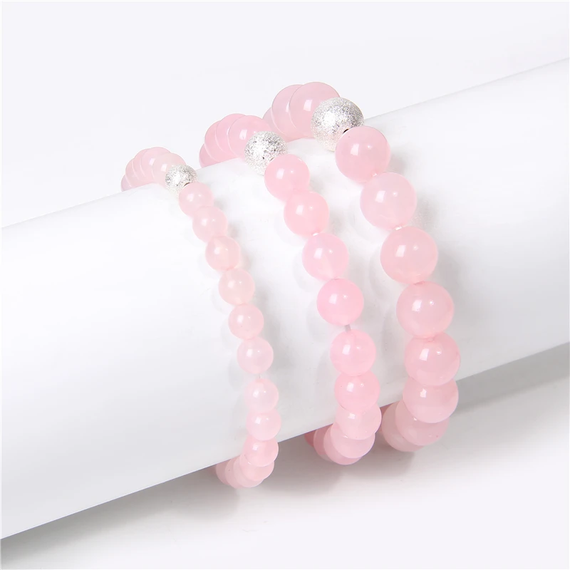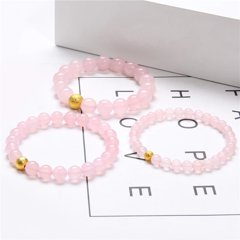 6 8 10mm Reiki Genuine Natural Rose Pink Powder Crystal Quartz Bracelet Handmade Crystal Charm Bracelet Jewelry for Women Gift