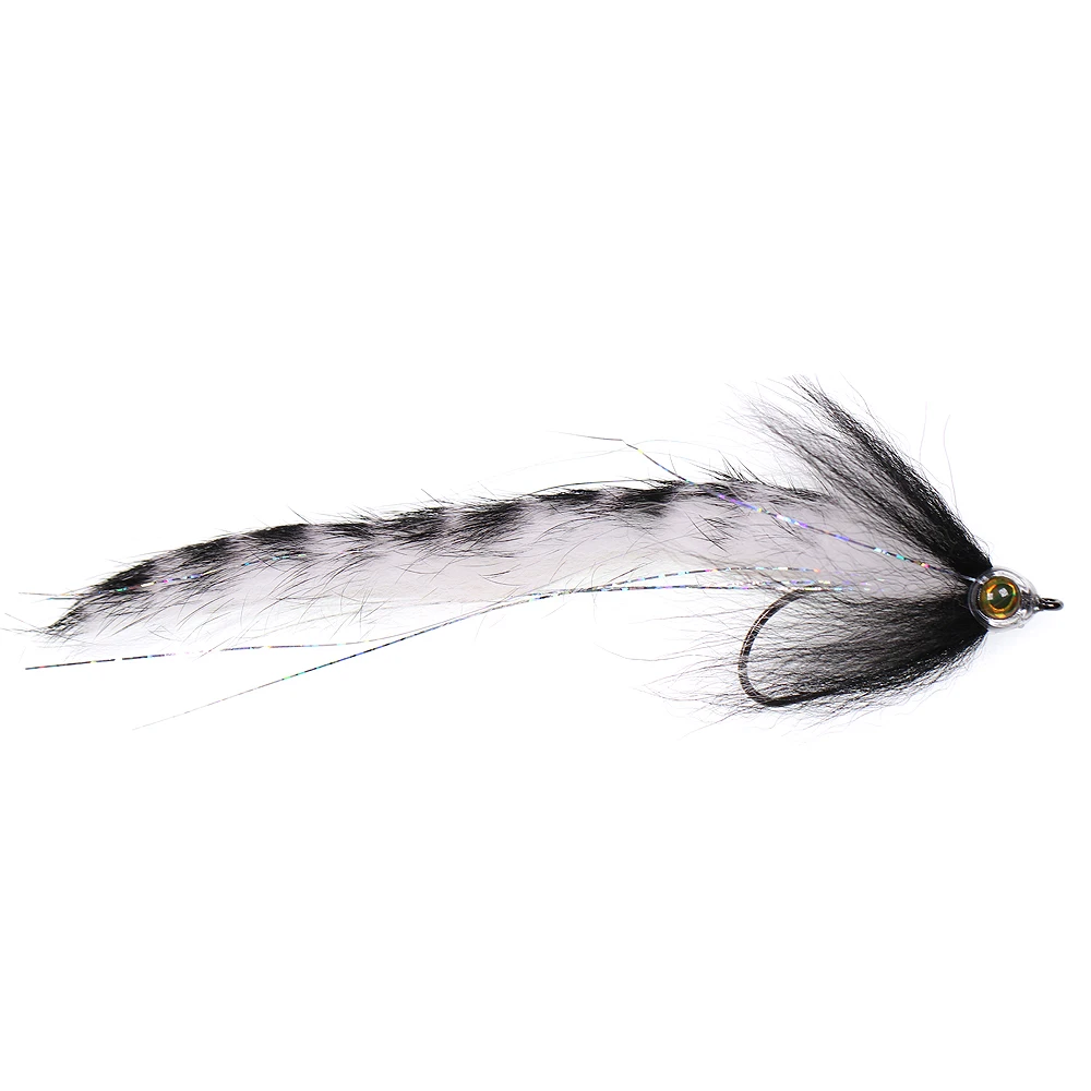 Рыбный череп Радуга Zonker Fly-Трейлер 4,8 ". Это один из наших любимых товаров для больших радуг, коричневых и бычьей форели. Это даже отличный рисунок для мелких басов! Быстро тонет, благодаря головке черепа рыбы. Артикуляция дает ей тонну Реалистичного движения в воде также!
