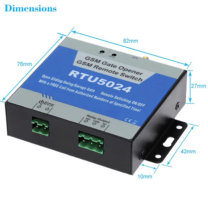 ◆ Использование GSM сетевой связи, без ограничения расстояния, может использоваться в любом месте; ◆ Широкий дизайн рабочего напряжения, поддержка 9 ~ 24 В постоянного тока питания и защита от обратного хода; ◆ Использование SMS для установки параметров удаленно, прост в эксплуатации и прост в использовании; ◆ Поддержка 200 групп чисел, каждая группа чисел может быть установлена для управления реле в течение определенного периода времени. ◆ Один релейный выход. Авторизованный номер будет закрыт при вызове, и он будет автоматически отключен при достижении установленного времени. ◆ После того, как телефон управления реле, он может отправлять текстовые сообщения действий пользователю. ◆ В диапазоне от 0 до 999 секунд, реле времени закрытия может быть Контролируемая произвольно, где 0: реле будет открыт после 0,5 секунд, и 999 означает, что: реле будет оставаться закрытым до тех пор, пока номер разрешения не будет набран. ◆ Вы можете запросить текущее состояние устройства (состояние реле и значение сигнала GSM) через sms-инструкции. ◆ Вы можете загрузить текущее состояние устройства для первого пользователя по SMS. ◆ Используя часы в модуле, отправьте текстовое сообщение себе после каждой загрузки; ◆ Использование металлический чехол, степень защиты IP30. Металлический чехол надежно изолирован от системы, что особенно подходит для промышленного контроля; ◆ Малый размер, L82 * W76 * H27 мм, поддержка установки стены.