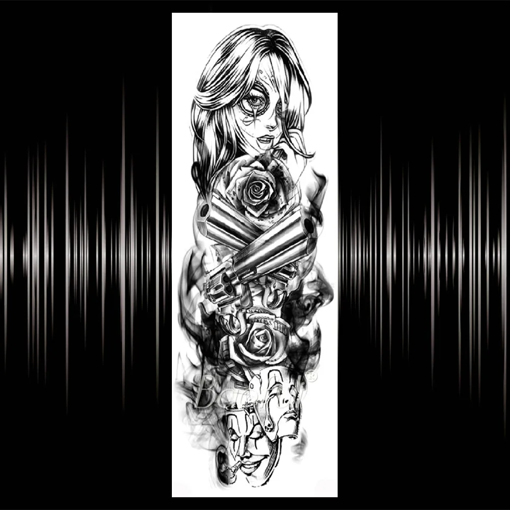 Будда часы с лотосом тату наклейка Реалистичная поддельная череп полные ноги рука Тотем Лев большой рукав Temp татуировки для женщин мужской боди-арт