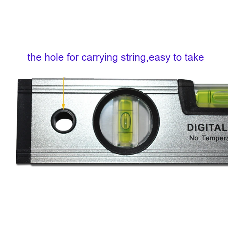 -Этот цифровой уровень измеряет все углы в диапазоне 360 ° или четырех квадрантов 90 °. -Он может отображать как степень, так и наклон. -Есть две версии --- с магнитами на пуговице и без магнитов. -Дисплей всегда находится в вертикальном положении, которое лучше всего подходит для работы над головой. -Не только этот инструмент может измерять горизонтальную и вертикальную поверхность, он также может измерять углы всех наклонов подъема и падения.