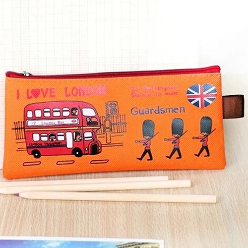· Лондон Стиль студентов детская сумочка для ручек и карандашей Чехол Организатор канцелярские девушки косметический мешок для макияжа держатель портмоне с застежкой-молнией
