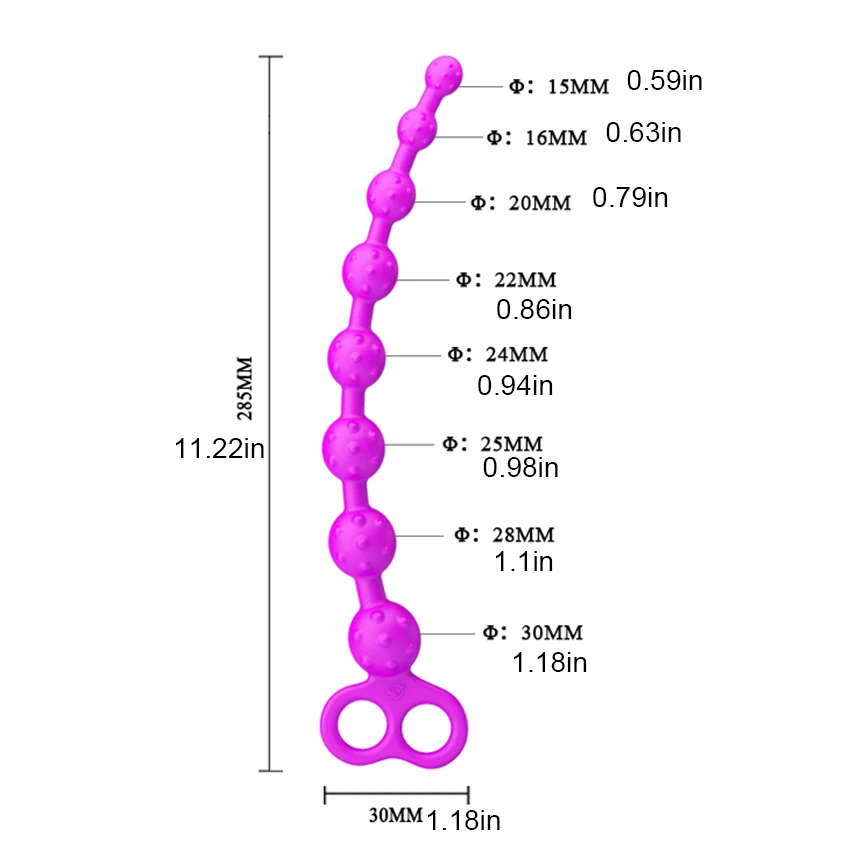 Size:30.5*3cm/12*1.18inch;25*3cm/9.84*1.18inch;20*2.3cm/7.87*0.9inch,19.5*2.3cm/7.68*0.9inch;28.5*3cm/11.22*1.18inch Material: body safe silicone material Waterproof: full of waterproof, convenient to clean Feature: Silicone material soft and comfortable, unique ergonomic design. double loop handles Deep waterproof, easy to clean Characteristic, bending, soft and elastic smooth Both men and women can use it Description: If you have cravings for some anal stimulation then try out these fabulous purple rippled silicone anal beads. They work perfectly for anal experts and beginners alike as the first few beads are very manageable in size, and bulid up to slightly larger sizes. Slowly insert the beads into your anus and enjoy the stimulating feeling as you remove them whilst you orgasm. With this technique anal beads, you will be obsessed in no time. Turn up the heat and intensify orgasms with this easy-to-clean and durable silicone anal toy. Featuring graduated-size firm round pleasure beads on a slender, flexible on a slender, flexible shaft, ending in a sturdy ring you can use to remove them when you're done, or to withdraw them very slowly while you're still enjoying the sensations