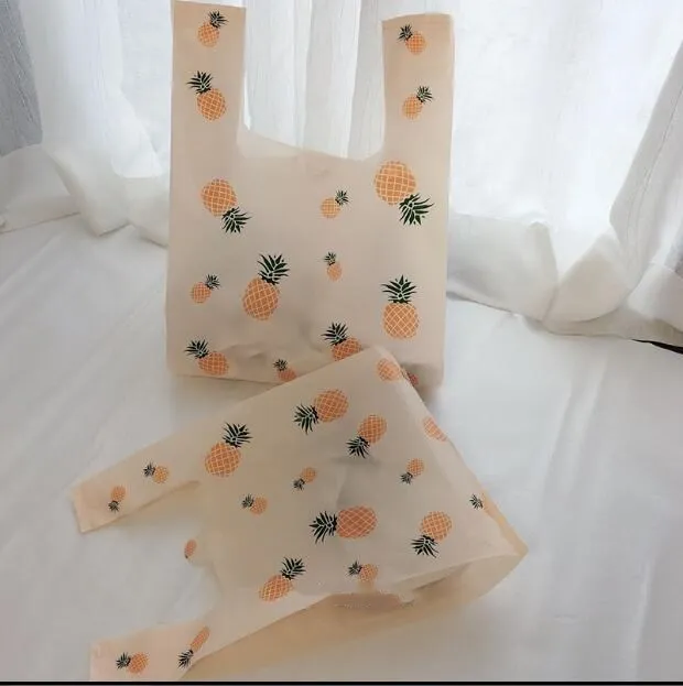 Милый жилет с принтом фруктов, маленький пластиковый пакет с ручкой, сумка для хранения продуктов, закусок