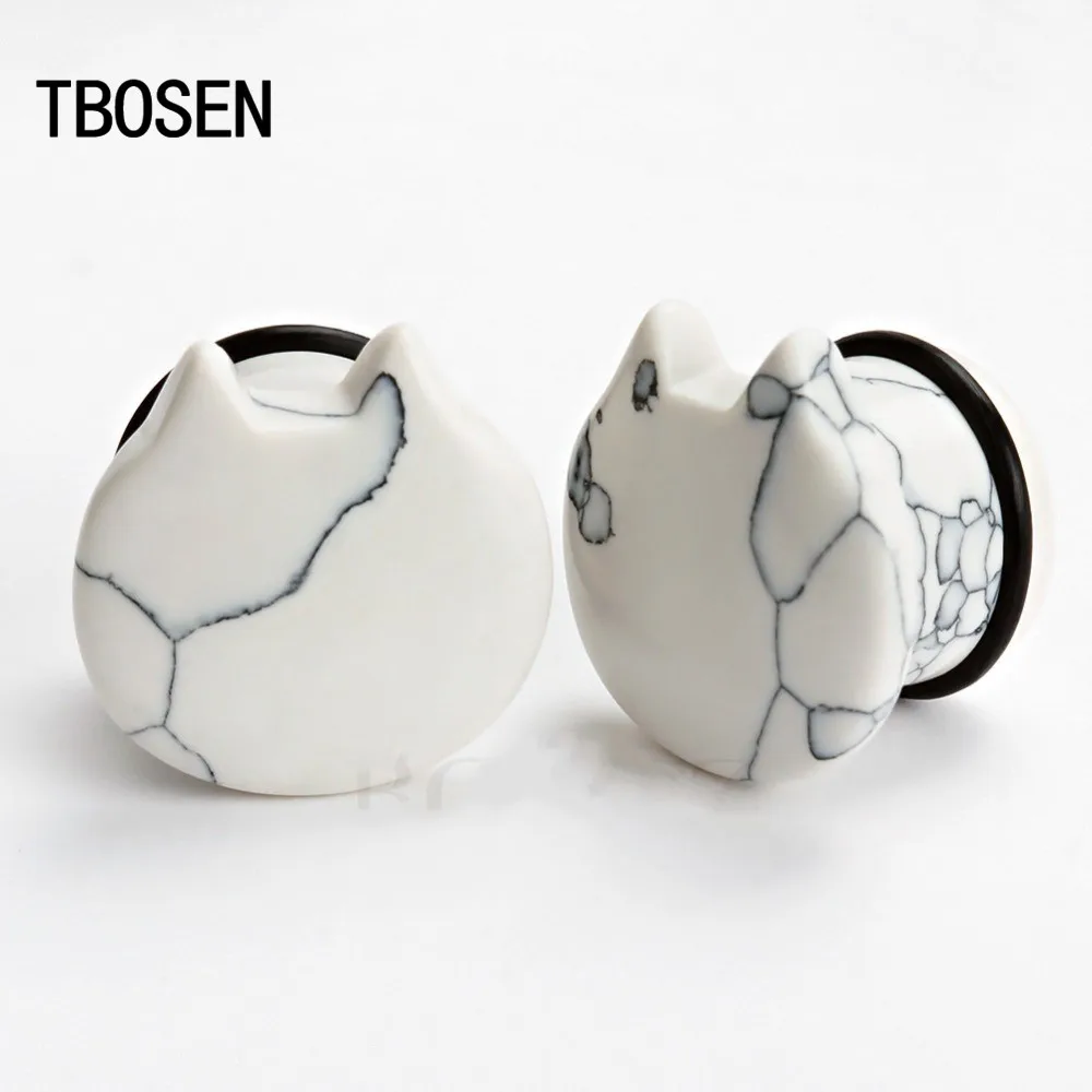 Новинка, кошачий стиль, камень, затычки для пирсинга, тоннель, ювелирное изделие для тела, много цветов, расширители для ушей, манометры, распродажа, 2 шт. в партии, 6-16 мм