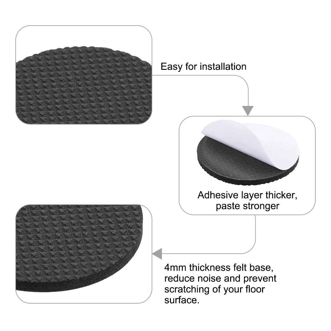 Наши подушечки из ЭВА имеют цепкий клей, который не позволяет им отвалиться от мебельных ножек и плотно удерживать подушечки в течение длительного времени.