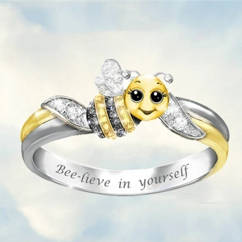 Милое Кристальное кольцо пчела, Серебряное золото, два цвета, смешанные вечерние кольца для женщин, верьте в себя, Vilentin, модные ювелирные изделия, аксессуары
