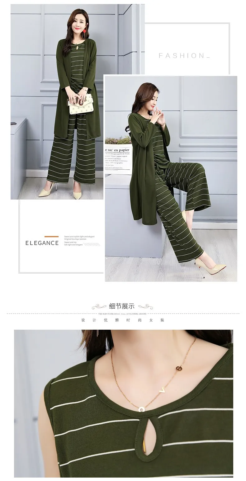 Pring полосатый комплект из 3 предметов, женский жилет, кардиган и широкие брюки, комплекты, костюмы для офиса, элегантные женские комплекты из 3 предметов DG146