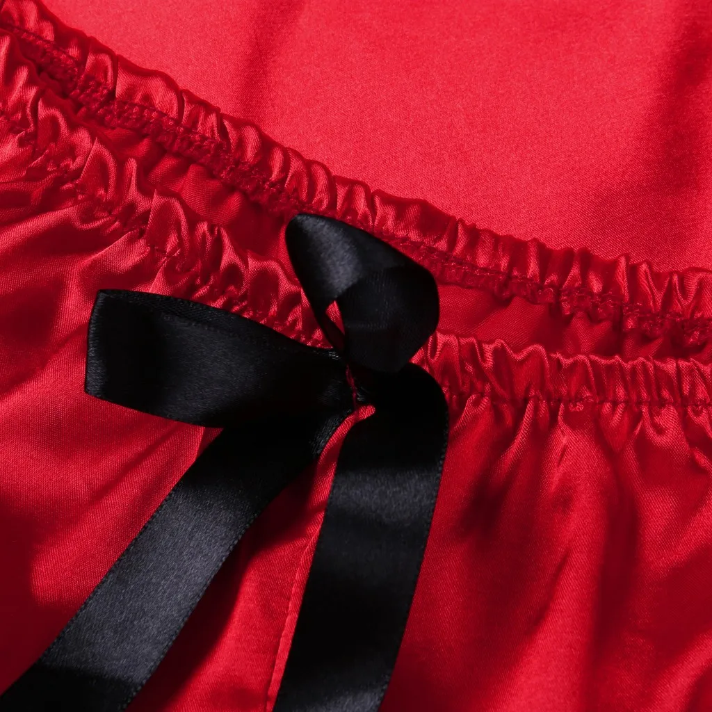 Атласная Шелковая пижама с бантом, ночная рубашка, женское нижнее белье, атласная пижама