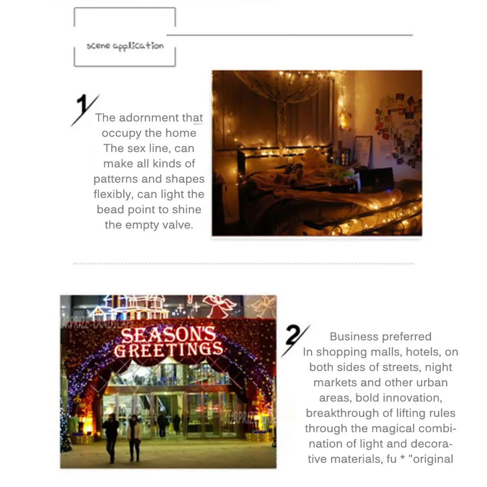 С регулируемой солнечной панелью, гирлянда на солнечных батареях может эффективно поглощать и преобразовывать солнечный свет в электричество. Кроме того, он будет непрерывно работать в течение 8-10 часов ночью после 6-8 часов полной зарядки в течение дня. Срок службы более 50000 часов.