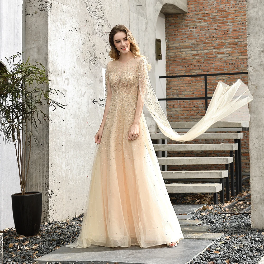 Серебристо-серые Роскошные Дубай вечерние платья 2020 с длинным рукавом o-образным вырезом А-силуэта Сексуальные вечерние платья