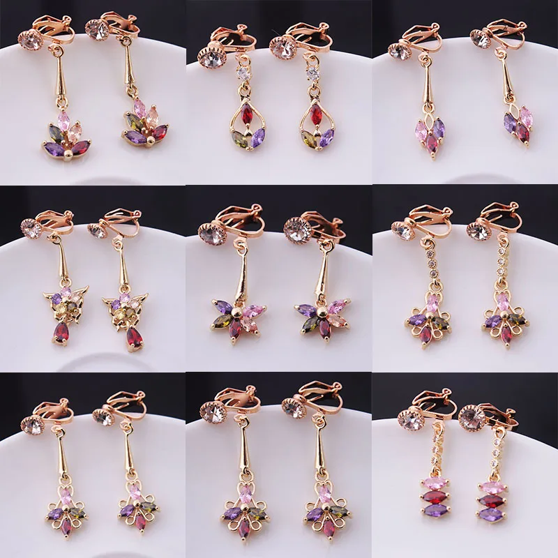 Роскошные чешские ювелирные изделия серьги Клипсы из розового золота белого и
