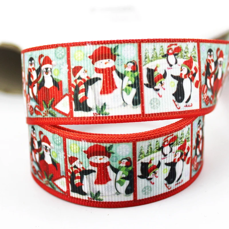 Ленты:16 мм/22 мм/25 мм/38 мм/57 мм/75 ммРисунок пингвина из мультфильмаGrosgrain ДОТП на 10/25/50 ярдов DIY Подарочная обертка для шитья Свадебный декор ленты