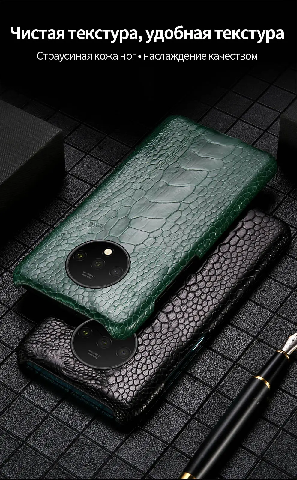 1. Материал задника: 100% натуральная кожа страуса. 2. Внутренний Материал: Поликарбонат 3. Функция: Отличная защита от грязи, царапин и повреждений. 4.100% процесс ручной работы, 100% абсолютно новый и хорошего качества. 5. Отличный подарок для вашего любимого или себя. Пожалуйста, не беспокойтесь о том, что изображение показывает не ту камеру, когда вы получаете продукт, это идеальное сочетание с точностью местоположения отверстия камеры.
