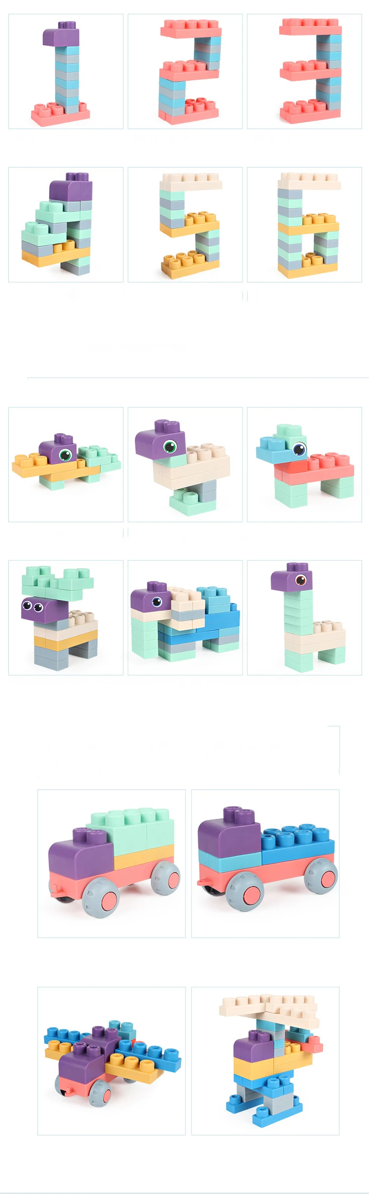 Особенность: 1. Материал TPR, без формальдегида, безопасный и нетоксичный. С точки зрения обработки, этот материал-пластик. По своему характеру он также резиновый. Следовательно, пластик имеет твердость и гибкость резины, которую можно сжимать и деформировать, не влияя на использование строительных блоков. 2. Можно кусать, зубчатые гелевые блоки, дезинфицировать при высокой температуре 3. Сжимается при прослушивании ручки, тренировке слуха и прикосновения 4. Конкурентное образование Восприятие цвета, распознавание животных, геометрический мозаичный дизайн 5. Количество: 20 распакованных, 40 распакованных, 20 оригинальных коробок, 40 оригинальных коробок, отправляются по вашему выбору. 6. Цвет: случайный цвет Примечание: 1. Ящик для хранения предназначен только для демонстрации, не входит в комплект. 2. Не очень мягкая резина, больше похожа на мягкий пластик, можно эластично выдавливать и кипятить.