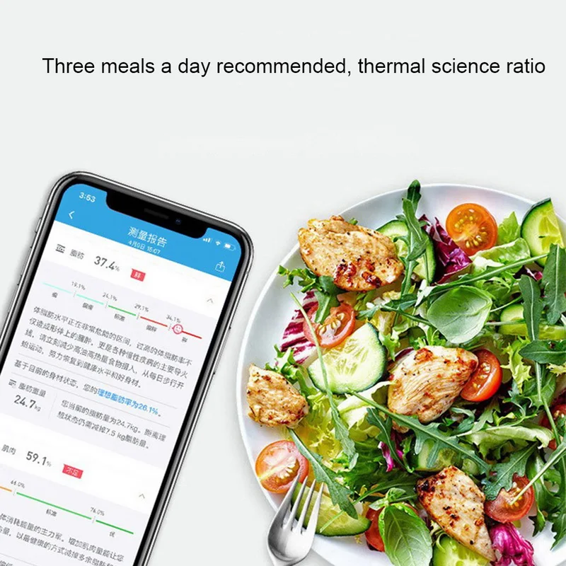 <15 Основные измерения: Шкала точно измеряет вес тела, жир, воду, ИМТ, мышечную масса, костную масса, Висцеральный жир и белок до 15 деталей данных.