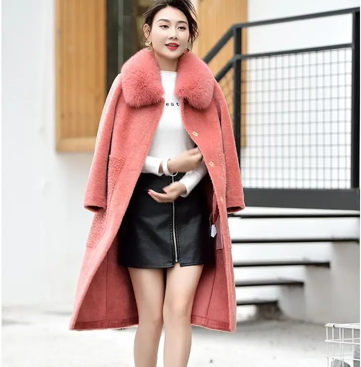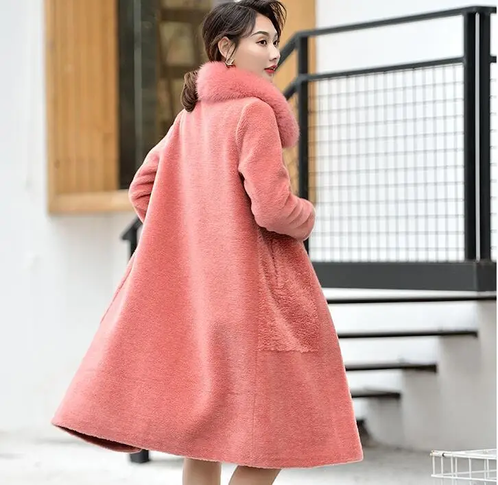 Женское пальто с длинным рукавом воротником-стойкой в полоску из натурального