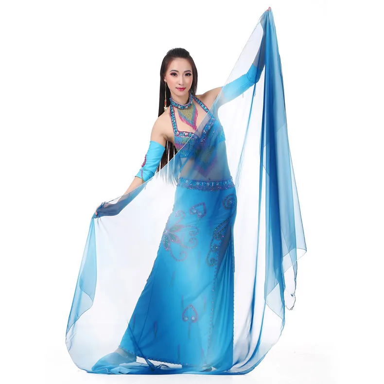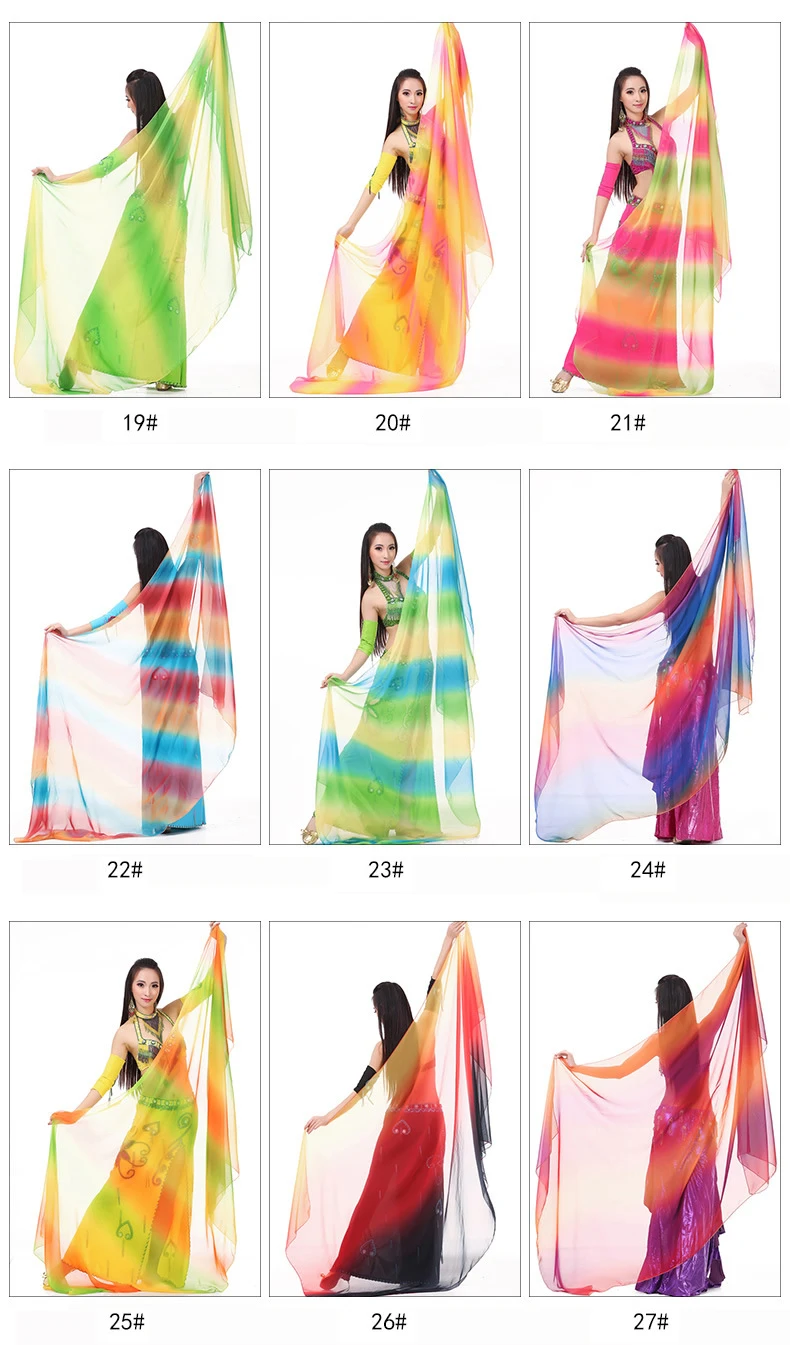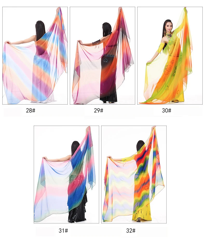 Вуаль для танца живота, шифоновая вуаль, шелкоподобный Болливуд, для выступлений на сцене, танцевальный шарф, шаль 250 см * 120 см, аксессуары для танцев, фата
