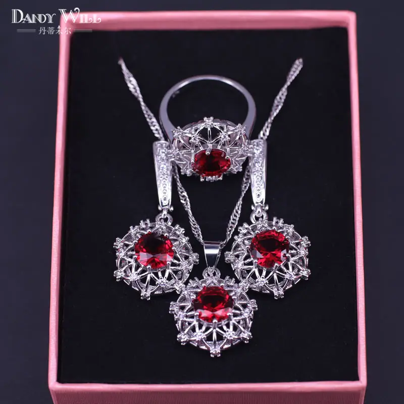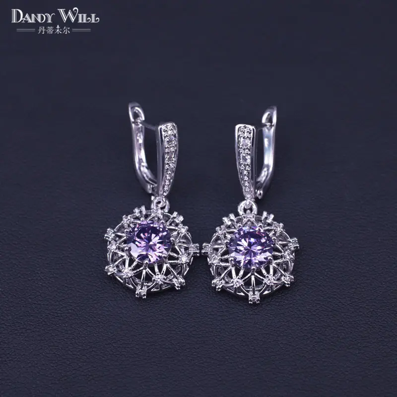 Серебро 925 костюм комплект ювелирных изделий фиолетовый кубический циркон белый кристалл свадебный набор украшений для женщин кольцо/кулон/ожерелье/серьги
