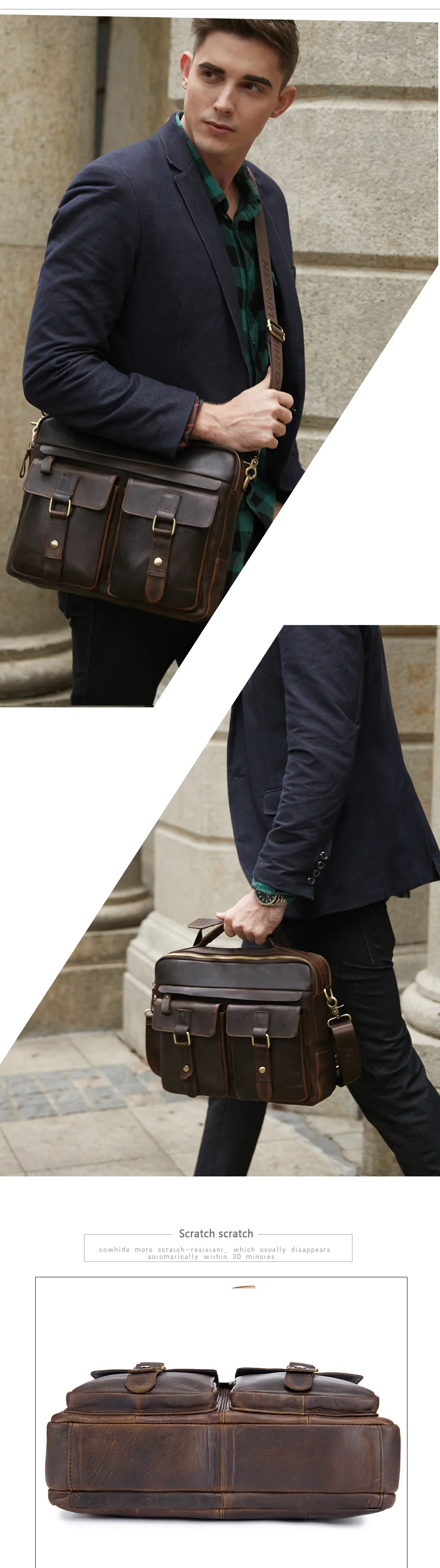 Мужской деловой портфель из коровьей кожи вместительная черная Дорожная сумка