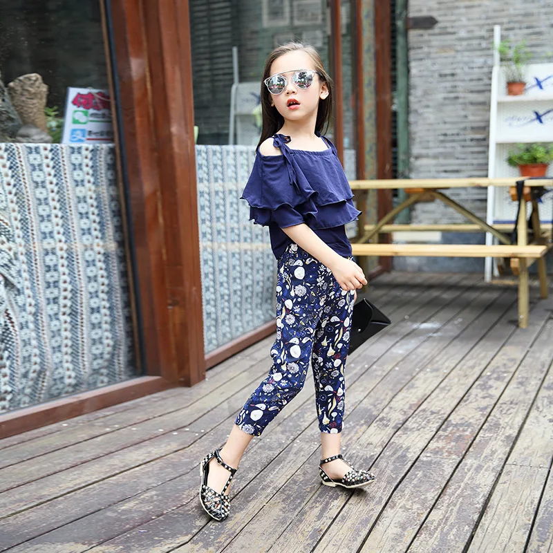 Детская одежда костюм для больших девочек брюки с цветочным рисунком комплект из
