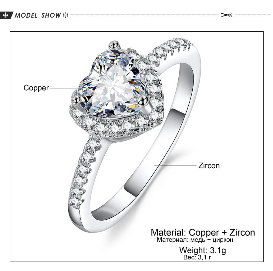 Женское Обручальное кольцо с фианитом белое круглым кубическим цирконием