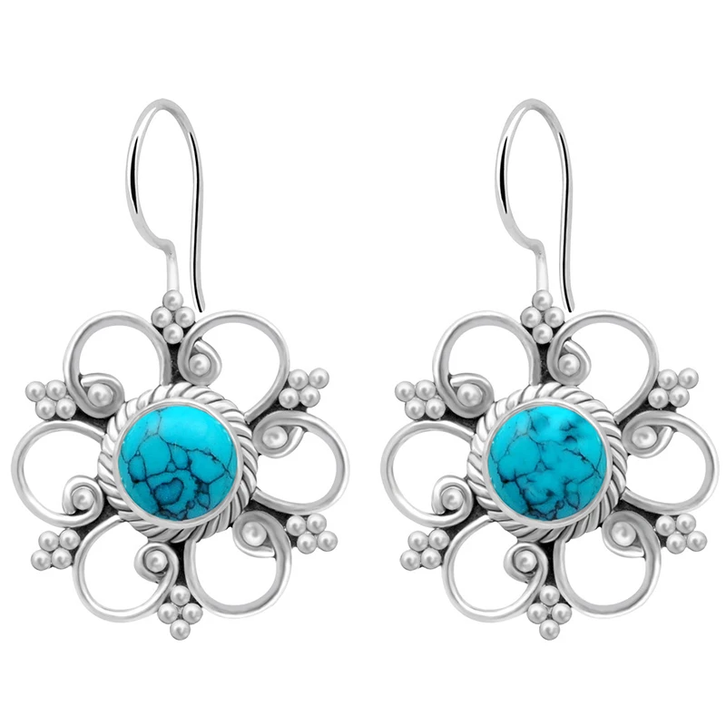 WEGARSTI 935 Серебряные ювелирные изделия серьги-гвоздики Ретро Винтажные полые женские серебряные цветные длинные богемные серьги-гвоздики для женщин