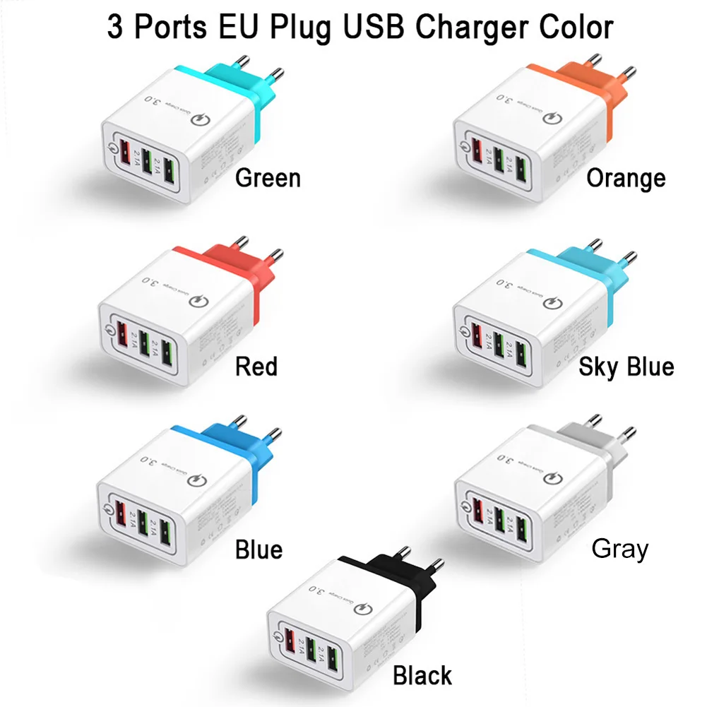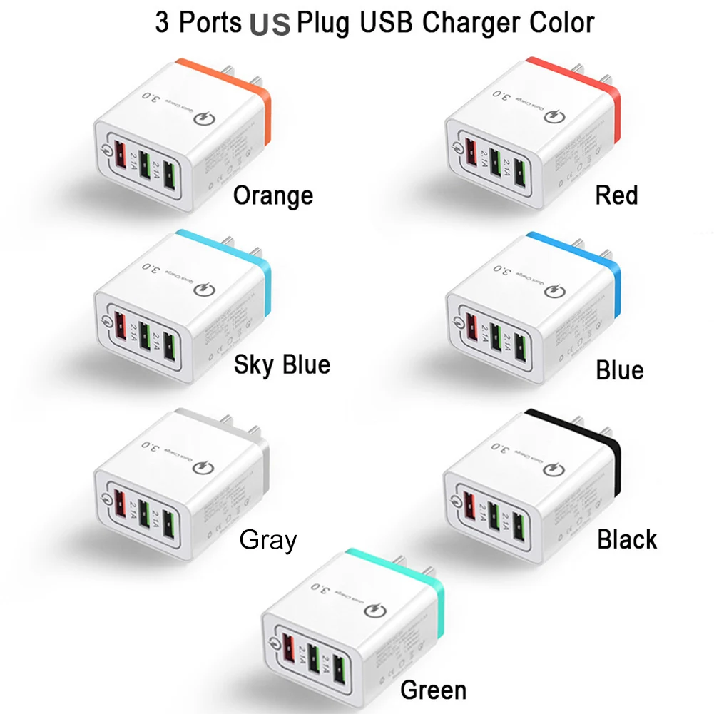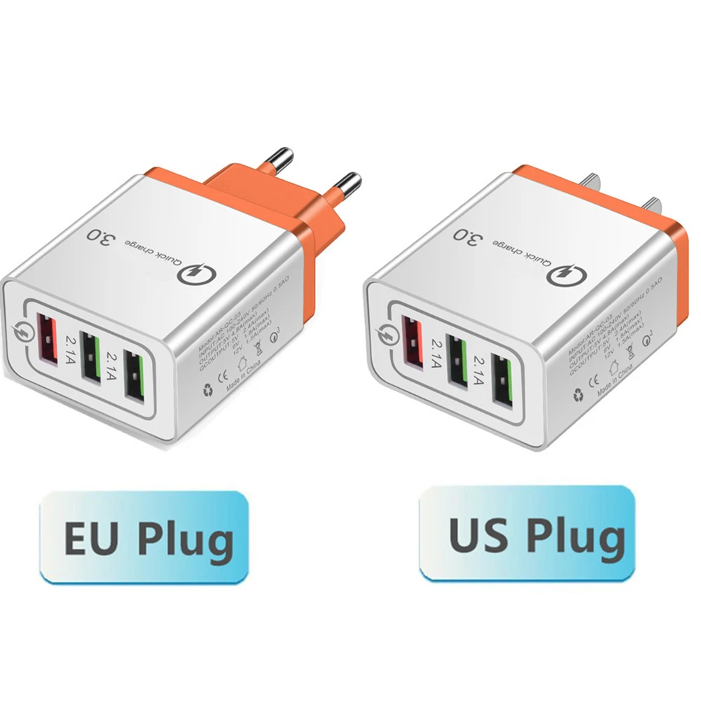 Портативный дорожный адаптер QC 3,0 с 3 портами USB для быстрой зарядки