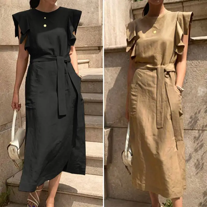 Женское длинное платье из хлопка и льна зеленое клетчатое в стиле ретро с
