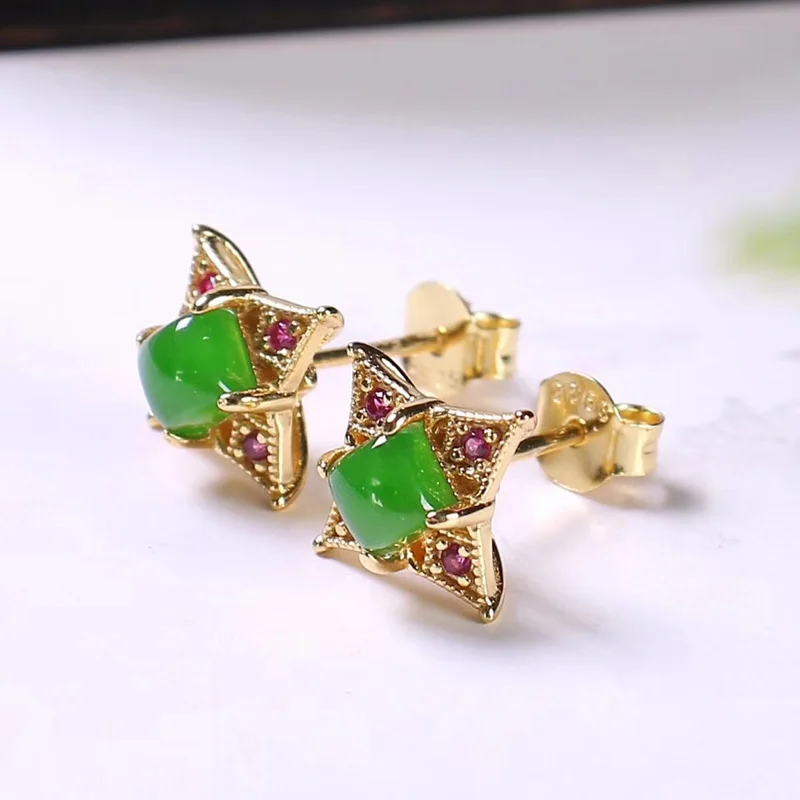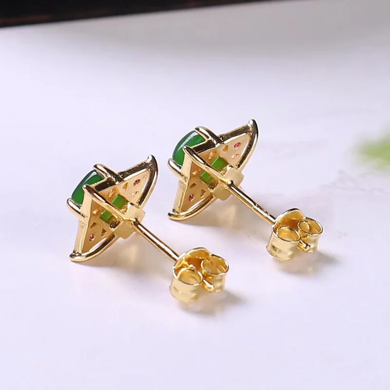Название: Jadery Pure 18 К золотые серьги-гвоздики для женщин натуральная темно-зеленая яшма Нефритовая серьга роскошные свадебные очаровательные ювелирные изделия подарки 2019